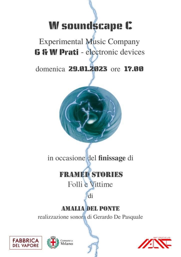 Finissage della mostra Framed Stories di Amalia del Ponte con W soundscape C sonorizzazione live originale creata appositamente che prende spunto acusticamente dai suoni che caratterizzano la mostra stessa inserendoli in un contesto di ascolto diffuso.