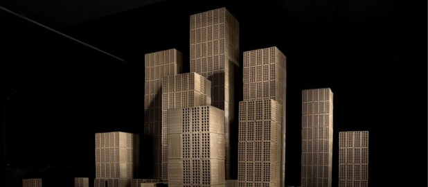 L'installazione è di grande effetto, costituita da quasi 3.000 mattoni che riproducono lo skyline di una città immaginaria, una specie di gigantesco sistema di frattali nel quale un singolo mattone, la cellula di base, prende l’aspetto di un edificio, mentre migliaia di quegli stessi mattoni replicati e giustapposti l’uno accanto all’altro assumono le sembianze di una metropoli contemporanea.