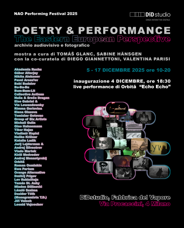 Curata da Sabine Hänsgen e Tomáš Glanc, la mostra nasce dal progetto di ricerca ERC “Performance Art in Eastern Europe (1950-1990)” realizzato dall'Università di Zurigo. Tra il 2017 e il 2024 versioni diverse della mostra sono state presentate in nove differenti sedi espositive in otto paesi europei: - Zilina (SVK), Belgrado (SRB), Zurigo (CH), Dresda (DE), Budapest (HU), Wrocław (PL), Liberec e Praga (CZE), Dnipro (UKR) – sarà presentata per la prima volta in Italia a Milano, nella cornice del DiDstudio, Fabbrica del Vapore. Ora sarà presentata per la prima volta in Italia presso il DiDstudio, Fabbrica del Vapore, Milano.