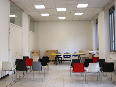 La sala è dotata di sedie, tavolo e proiettore ed è preceduta da un atrio, utilizzabile per esposizioni temporanee collegate all’evento in programma. Lo spazio viene impiegato per conferenze stampa, talk, presentazioni e laboratori creativi.
